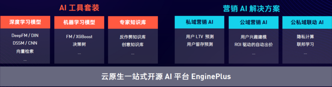 熱力引擎的基座是AI平臺,AI模型采取機器學習和深度學習模型,對大數(shù)據(jù)不斷學習,模型越來越聰明,從而可使熱力引擎更好的服務于客戶的增長需求。