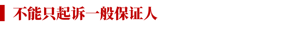 而一般保證或連帶保證最核心的區別便在于,一般保證人享有先訴抗辯權,債權人不能在不起訴債務人的情況下單獨起訴一般保證人(這個問題后文會詳細分析,此處不再贅述), 而連帶保證人債權人則不享有先訴抗辯權,因此債權人可以選擇在不起訴債務人的情況下,單獨起訴連帶保證人。