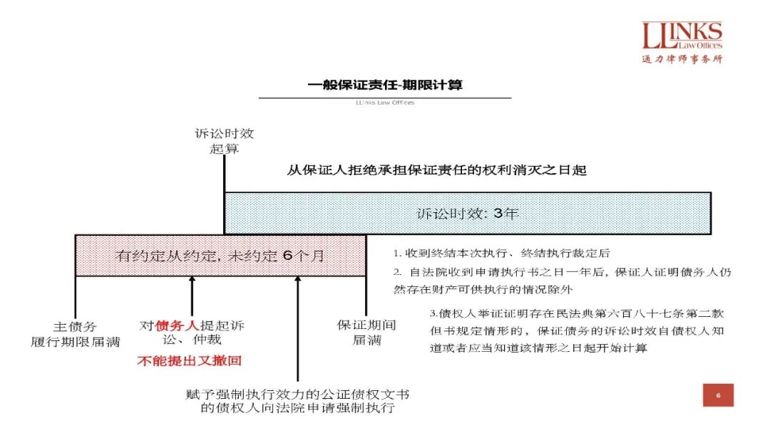 如果經常處理債權回收工作,你就會發現向債務人、保證人發函主張權利,不錯過保證期間和訴訟時效,也是工作的一部分,因此保證期限、訴訟時效的計算作為實現債權的前提,重要性不言而喻??紤]到相關規定比較繁瑣,我們特別以時間軸的方式為大家展現了一般保證和連帶保證責任的保證期間和訴訟時效計算規則。