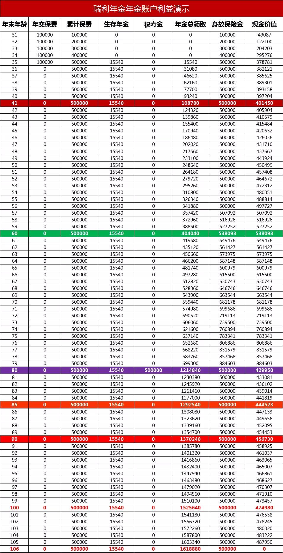 換句話說(shuō),如果80歲前身故,可以每年領(lǐng)錢,身故時(shí)還有身故保障金。