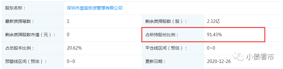截至2020年末,皇庭國(guó)際的控股股東皇庭投資已質(zhì)押2.32億股公司股份,股權(quán)質(zhì)押率為91.43%,鄭康豪股權(quán)質(zhì)押率達(dá)52.69%,高質(zhì)押率背后隱藏著平倉(cāng)風(fēng)險(xiǎn)。