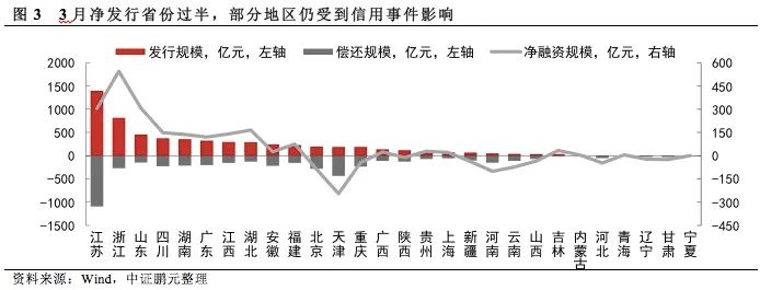 三、過半數省份實現城投債凈發行,天津、河南等地再融資較為困難