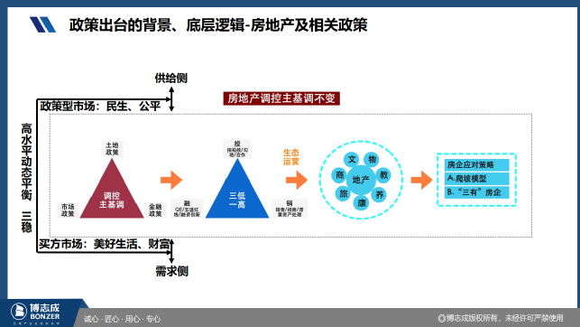 一些表面上看似放松調控的新政讓人感覺是意料之外,但思考背后邏輯之后就會覺得是情理之中。新政無一不在聚焦穩地價、穩房價、穩預期,房地產行業的去杠桿,為了防范系統性的金融風險,使房地產行業穩健的發展,高質量的發展。