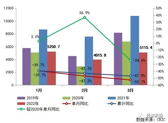 這與最新的房地產(chǎn)銷售數(shù)據(jù)是一致的。據(jù)克爾瑞研究顯示,今年3月TOP100房企銷售金額同比降低52.7%,較2月擴(kuò)大5.5個百分點(diǎn)。1-3月百強(qiáng)房企的銷售規(guī)模同比降低47%,也低于2020年的同期水平。房地產(chǎn)市場的惡化仍在繼續(xù),趨勢并沒有的到根本性的扭轉(zhuǎn),塌方風(fēng)險已然存在。