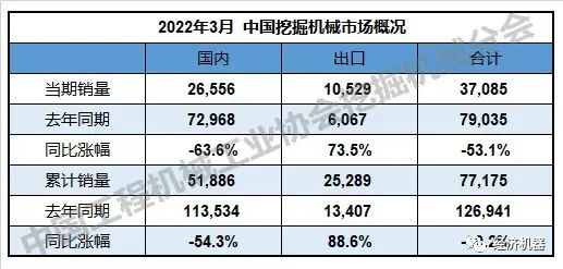 雖然地方債發(fā)行前置明顯,進(jìn)度顯著提升,但其使用效率似乎并不高。由最新的挖掘機(jī)數(shù)據(jù)可以窺見一二。2022年3月,共計銷售各類挖掘機(jī)械產(chǎn)品37,085臺,同比下降53.1%。其中,國內(nèi)市場銷量26,556臺,同比下降63.6%;出口銷量10,529臺,同比增長73.5%(圖6)。這表明,基建建設(shè)可能并沒有想象中那么火爆。