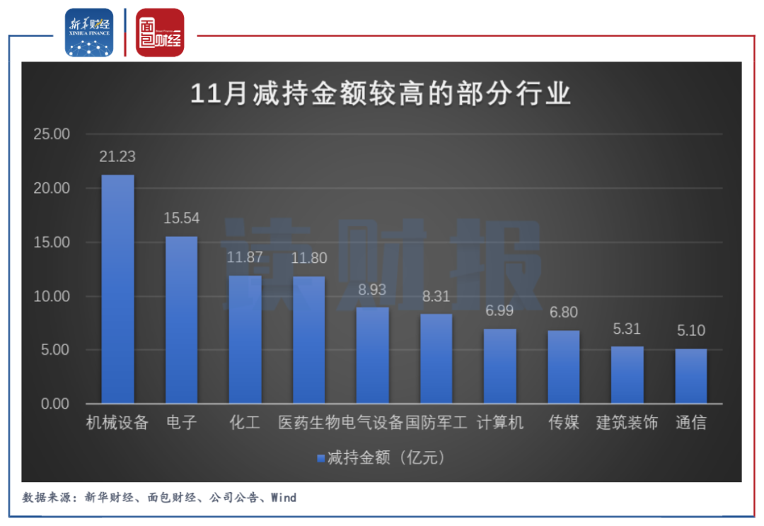 原標(biāo)題: 【讀財(cái)報(bào)】11月重要股東增減持動(dòng)態(tài):機(jī)械設(shè)備行業(yè)減持金額居首 醫(yī)藥生物行業(yè)增持金額最多