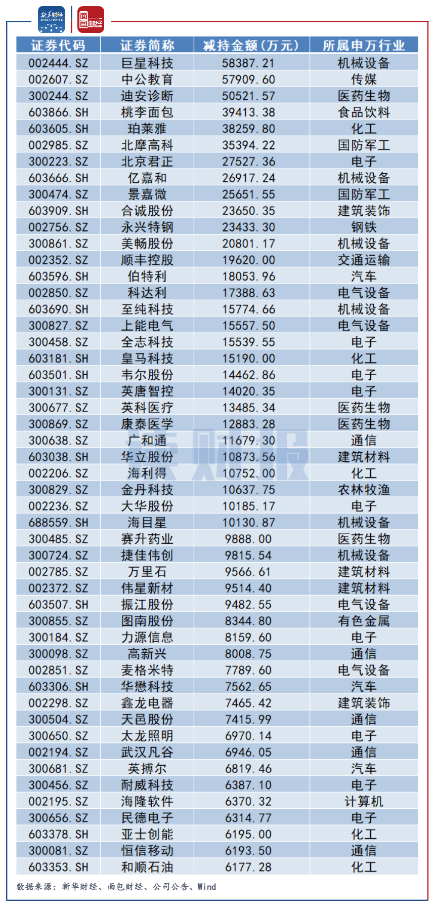 機(jī)械設(shè)備行業(yè)減持金額居首
