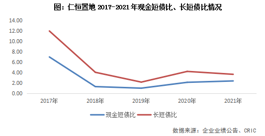 短期償債壓力不大,債務結構健康。截至2021年年末,仁恒置地持有現金218.2億元,較上年上升26%?,F金短債比2.37,同比上升0.27,主要是受益于項目回款率高,投資態度謹慎。長短債務比3.64,同比下降0.56。目前來看仁恒置地現金充足,短期內債務壓力不大,債務結構良好,財務狀況持續穩健,保持一定的負債水平也有利于企業維持經營及規模擴張。從近期發債情況來看,成都仁恒置地廣場26億元ABS獲得上交所受理,依然獲得資本市場認可。
