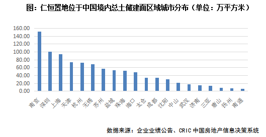【中國境內土儲較上年末下降9.4%,但依舊充足】截至2021年年末,仁恒置地中國境內總土儲964.6萬平方米,較2020年年末下降9.4%。按照其近年來每年銷售面積200萬平方米左右來看,消化周期能達到4年左右,仍能夠滿足企業未來的正常開發需求。從總土儲建面分布來看,南京土儲超150萬平方米,深圳、上海土儲皆在百萬平方米左右,這些城市市場對仁恒未來銷售起更大的影響作用。