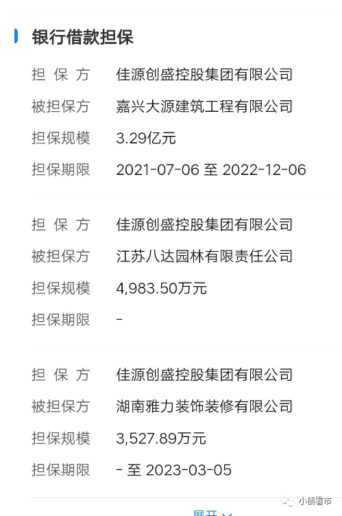 另外,截至2022年3月末,佳源創盛除按揭擔保外擔保比率為3.26%,且被擔保企業盈利能力很弱且資產負債率很高,公司存在一定或有風險。