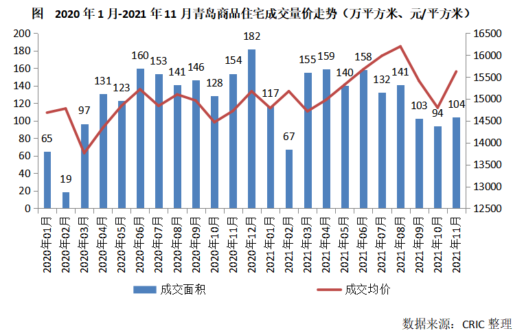 從房地產市場來看,近期青島樓市降溫顯著。四季度商品住宅量價走勢較二、三季度均有明顯下調,月均成交規模降幅超三成,并且商品住宅去化周期也在進一步拉長,11月份已經增至25個月,超過了18個月的警戒線,這也進一步也加劇了開發商拿地的謹慎心理,使其不敢貿然出手。