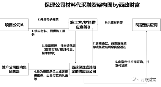 3.施工方/材料供應商將電子商票背書質押給西政保理或其指定的供應鏈公司,并申請供應鏈公司向其指定供應商采購商品、服務等;