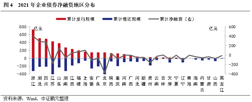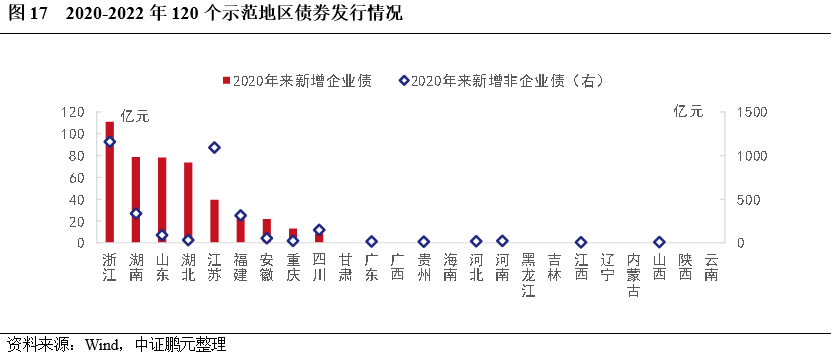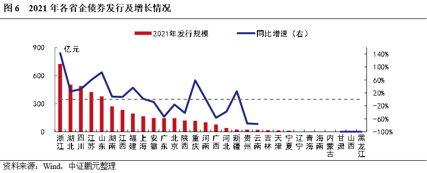 1. 企業債發行集中度較高,其中,浙江累計發行規模和漲幅最大