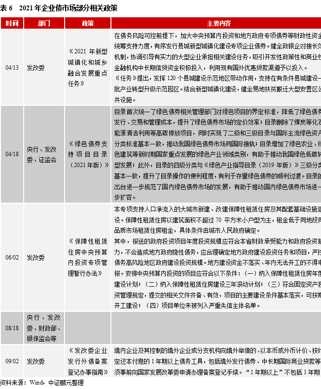 市場展望:第一,為實現“共同富裕”,城鎮化和農村產業融合依然是政策重點;綠色債、城鎮化債券將出現增長,但示范地區融資分化加劇。第二,企業債待償還規模或增加,隱性債務化解或繼續推動提前兌付。第三,資金跟著項目走,信用風險管理加強,低級別高負債企業債發行或出現收縮。