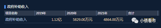 2019-2021年,云南水務分別獲得政府補助1.12億、5829萬元以及4864萬元,合計獲得2.19億補貼。