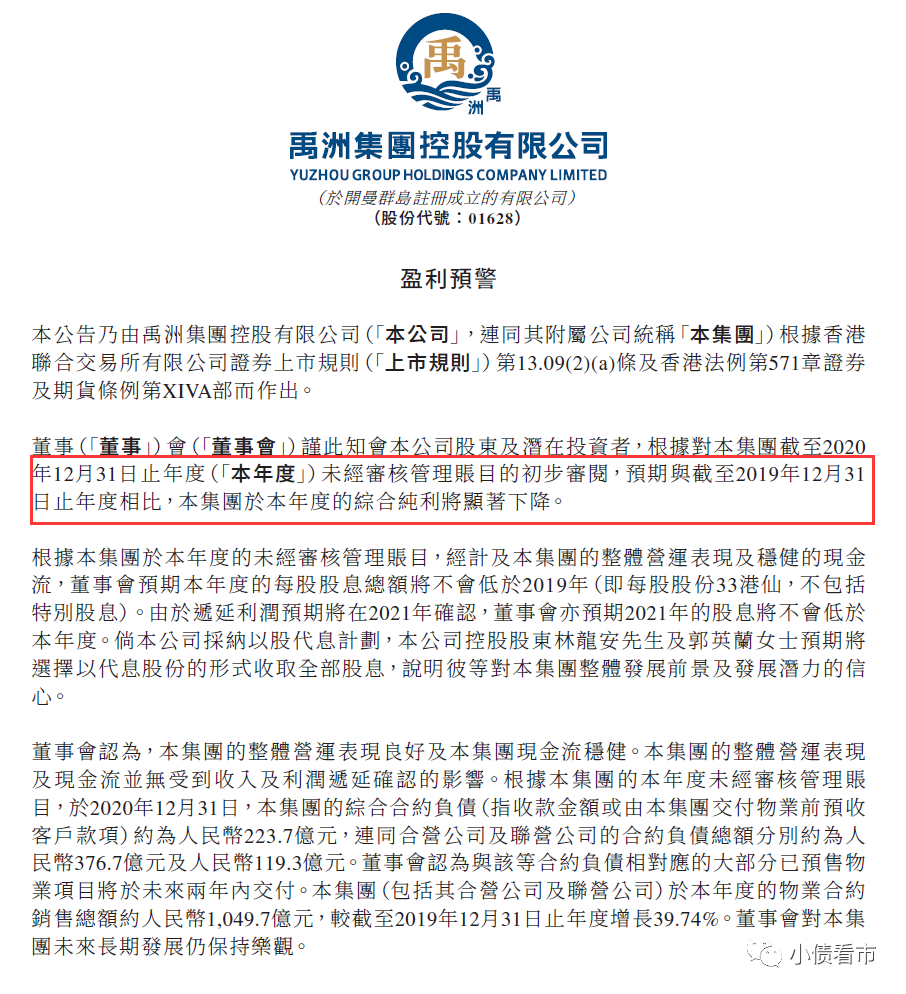 此前,禹洲集團(tuán)發(fā)布盈利預(yù)警公告稱,2020年度的綜合純利將顯著下降。