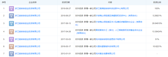 實際上,娃哈哈創(chuàng)投成立已有十余年。根據(jù)公開資料顯示,娃哈哈創(chuàng)投早在2010年11月8日就已成立。從2016年至今,娃哈哈創(chuàng)投共進(jìn)行過6次對外投資,包括投資寧波梅山保稅港區(qū)祺睿股權(quán)投資中心、高瓴智成長江人工智能股權(quán)投資基金合伙企業(yè)等。