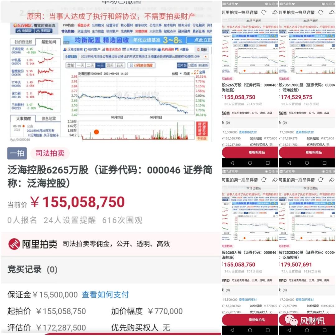 除此之外,風財訊留意到,本該在7月拍賣的泛海控股5筆股權(quán),均已顯示“和解撤回”。