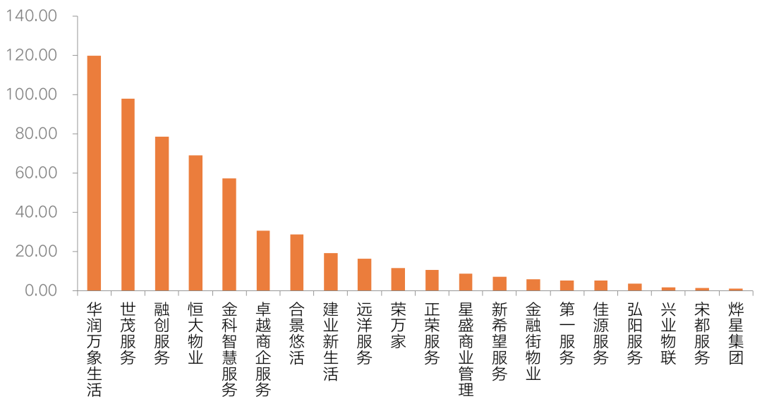 2020年以來(lái),新登陸港交所的物業(yè)服務(wù)企業(yè)達(dá)到21家,當(dāng)中包括恒大物業(yè)、融創(chuàng)服務(wù)、世茂服務(wù)以及華潤(rùn)萬(wàn)象生活等規(guī)模較大的物企,這些企業(yè)的IPO所得凈額都超過(guò)了60億港元,其中華潤(rùn)萬(wàn)象生活更是超過(guò)了120億港元。
