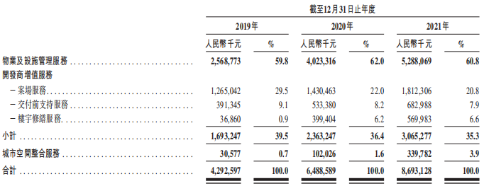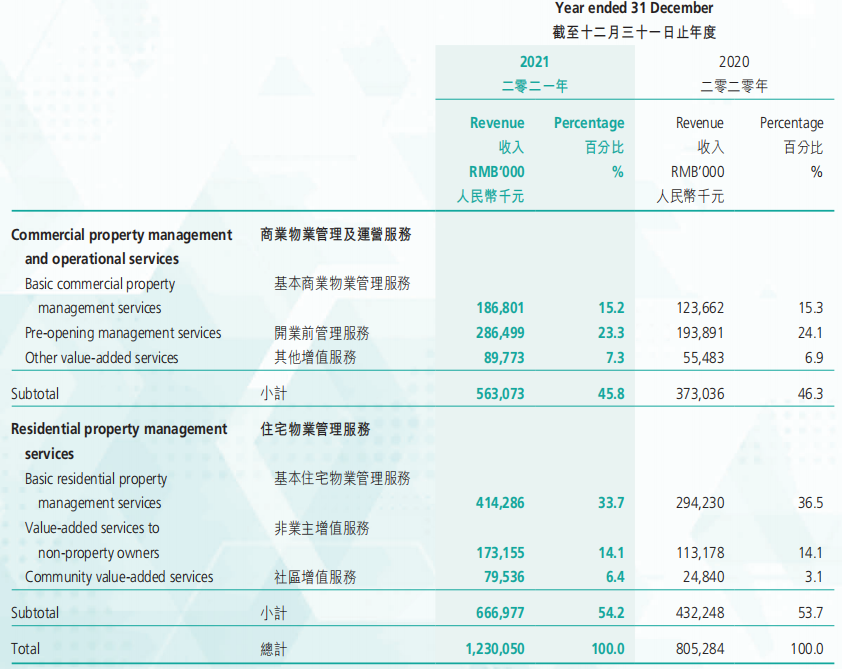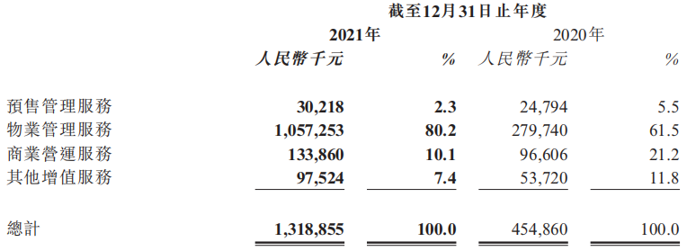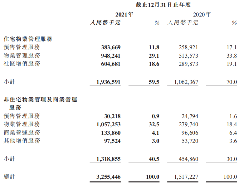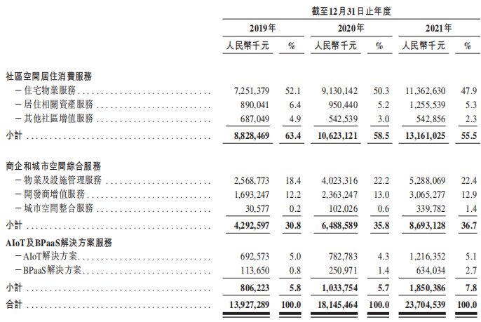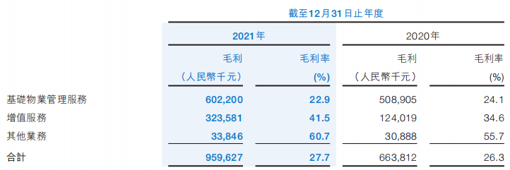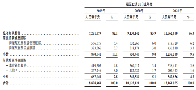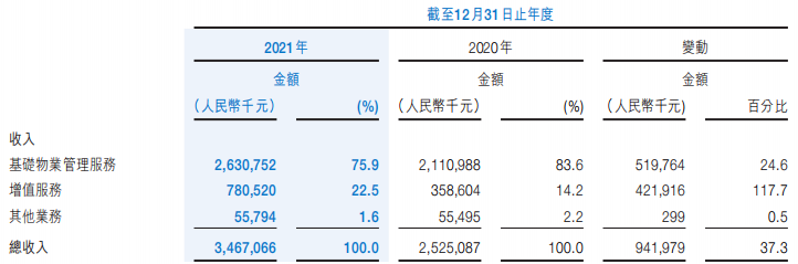 收入主要來源三個業務:基礎物業管理服務、增值服務以及其他業務。