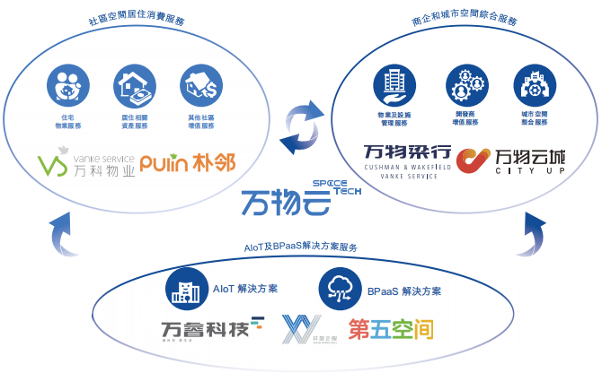 萬物云以「萬科物業」和「萬物梁行」為核心品牌,逐步搭建了豐富且系統化的萬物云自主品牌集群,三大業務條線下的品牌如下: