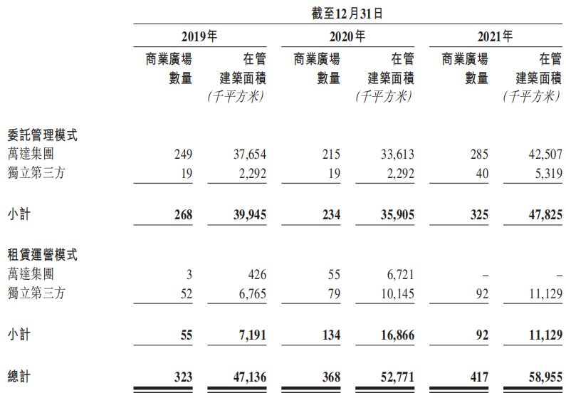 珠海萬達商管擁有285個萬達集團商業廣場均采用委托管理模式管理,合共135個在管獨立第三方商業廣場中95個采用租賃運營模式管理。