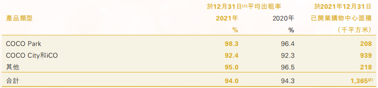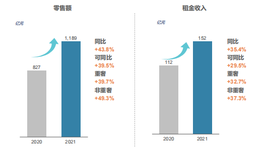 報告期間內,集團出租率維持在94%的健康水平,合作商戶數量超4300家,同店銷售額較2020年同期增長約21%。