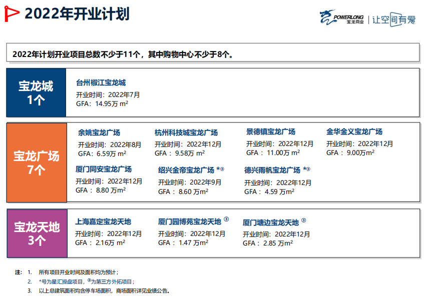預計2022年,在拓展規模和項目開業方面完成不低于70萬平方米的新拓合約面積,并實現不少于8個項目的炫彩開業;在運營管理方面,目標出租率不低于95%。