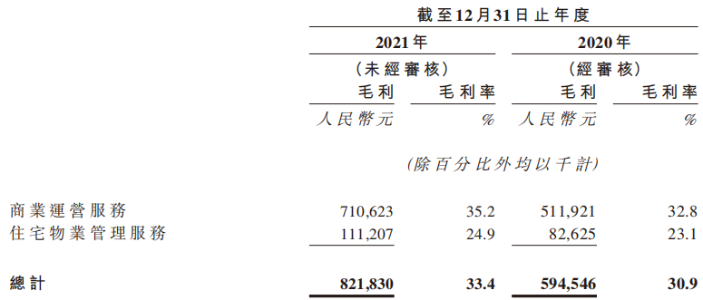 管商業物業管理及運營服務方面,報告期間內,實現總收入約為人民幣5.631億元,同比大幅增長約50.9%;商業物業管理及運營服務分部的毛利率為57.5%,同比輕微下跌1.5個百分點。