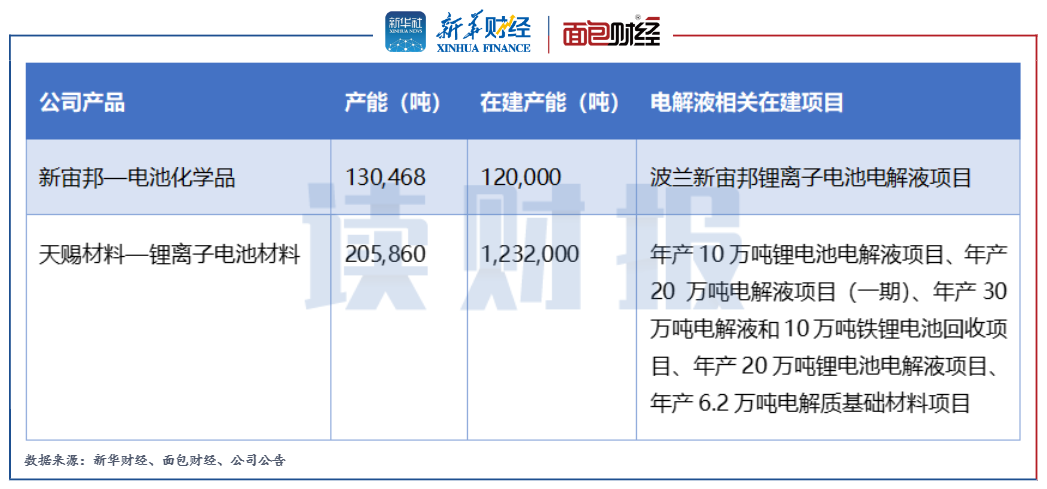 除此之外,2021年12月,天際股份提出定增預(yù)案,擬投資建設(shè)江蘇泰瑞聯(lián)騰材料科技有限公司3萬噸六氟磷酸鋰(主要電解質(zhì)材料)、6,000噸高純氟化鋰等新型電解質(zhì)鋰鹽及一體化配套項目。11月,石大勝華公告擬投資建設(shè)30萬噸/年電解液項目。