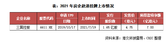 本月沒(méi)有房企完成上市,因此2021年全年新上市的房企僅有三巽控股一家。不過(guò)本月在房企旗下公司方面則有德商置業(yè)旗下的物業(yè)公司德商產(chǎn)投服務(wù)在17日完成了上市,其IPO發(fā)售價(jià)為1.11港元/股,所得IPO凈額為1.28億港元,。因此2021年新上市的房企旗下公司增至14家,不過(guò)近兩個(gè)月遞交上市申請(qǐng)的房企旗下公司數(shù)量明顯減少,港交所對(duì)于已交表的企業(yè)的審核也較為嚴(yán)格,房企旗下公司的上市速度有所減緩。除此之外,由于2022年開(kāi)始港交所對(duì)上市企業(yè)基礎(chǔ)盈利門(mén)檻提高的60%新規(guī)將正式施行,規(guī)模較小的房企旗下公司的上市將會(huì)越發(fā)艱難,未來(lái)是否還會(huì)出現(xiàn)上市潮還有待觀察。