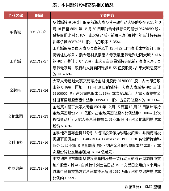 • 股權(quán)變動(dòng):多家房企出現(xiàn)股東減持,金科服務(wù)引入戰(zhàn)略投資者