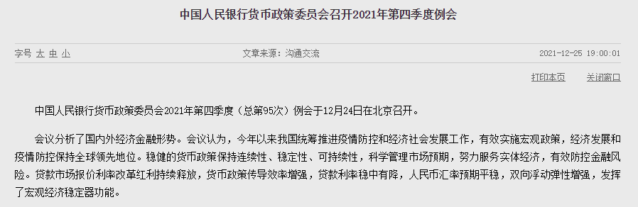 先從12月24日的央行貨幣政策委員會(huì)四季度例會(huì)開(kāi)始吧。