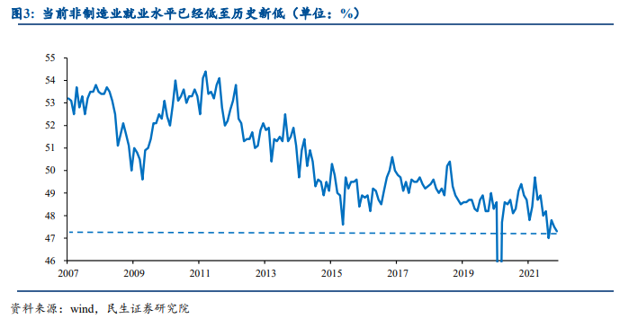 當(dāng)前我國(guó)就業(yè)壓力主要來(lái)自最靠近中低收入群體的服務(wù)業(yè)板塊,這一點(diǎn)和歷史表現(xiàn)極為不同。歷史上我國(guó)就服務(wù)業(yè)就業(yè),并未體現(xiàn)出明顯的周期特征。
