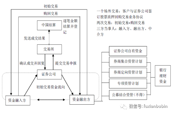 場(chǎng)外交易是指融入方將所持有的股票質(zhì)押,向銀行、信托等融入資金,未來(lái)返還資金、解除質(zhì)押的交易。場(chǎng)外交易的操作主體不限于證券公司,還包括銀行、信托、保險(xiǎn)公司、基金子公司等。場(chǎng)外交易不通過(guò)交易所系統(tǒng),而是直接到中國(guó)證券登記結(jié)算有限公司辦理登記。場(chǎng)外交易不能在場(chǎng)內(nèi)交收和處置股票,相較于場(chǎng)內(nèi)交易更為靈活、不需要遵循標(biāo)準(zhǔn)化流程: