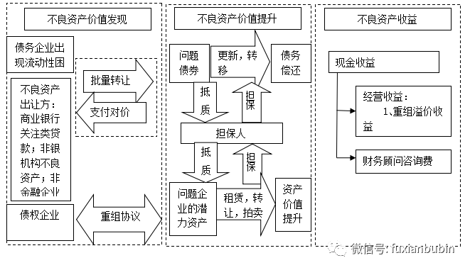 但是不同于其他幾種不良資產(chǎn)經(jīng)營(yíng)模式,債務(wù)重組需要對(duì)企業(yè)未來(lái)經(jīng)營(yíng)進(jìn)行深度介入,通過(guò)企業(yè)的起死回生實(shí)現(xiàn)價(jià)值增值,所以債務(wù)重組是一個(gè)價(jià)值發(fā)現(xiàn)的過(guò)程,并通過(guò)價(jià)值經(jīng)營(yíng)的提升,最終實(shí)現(xiàn)不良資產(chǎn)經(jīng)營(yíng)主體與“有救企業(yè)”之間的共贏: