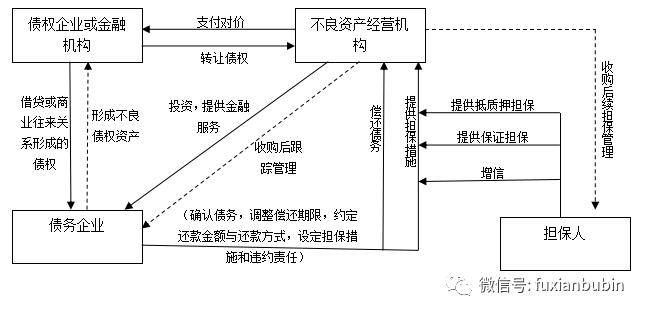 正因如此,債務(wù)重組是針對(duì)出現(xiàn)流動(dòng)性困難的企業(yè),不良資產(chǎn)經(jīng)營(yíng)機(jī)構(gòu)分別與債權(quán)人、債務(wù)人就還款金額、還款方式、還款時(shí)間等債權(quán)債務(wù)問(wèn)題達(dá)成協(xié)議,通過(guò)更改債務(wù)條款,實(shí)行債務(wù)合并的方式,優(yōu)化該類(lèi)企業(yè)的資產(chǎn)負(fù)債結(jié)構(gòu)、盤(pán)活企業(yè)不良資產(chǎn),幫助企業(yè)渡過(guò)財(cái)務(wù)危機(jī)的一種不良資產(chǎn)經(jīng)營(yíng)模式,其基本業(yè)務(wù)流程如下圖: