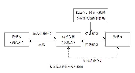 企業(yè)基于自身?yè)碛械膬?yōu)質(zhì)權(quán)益(基礎(chǔ)資產(chǎn)的權(quán)利無瑕疵并且現(xiàn)金流穩(wěn)定可控)與信托公司合作,通常采用“權(quán)益轉(zhuǎn)讓附加回購(gòu)”等方式,從而實(shí)現(xiàn)優(yōu)質(zhì)資源整合放大的信托融資模式