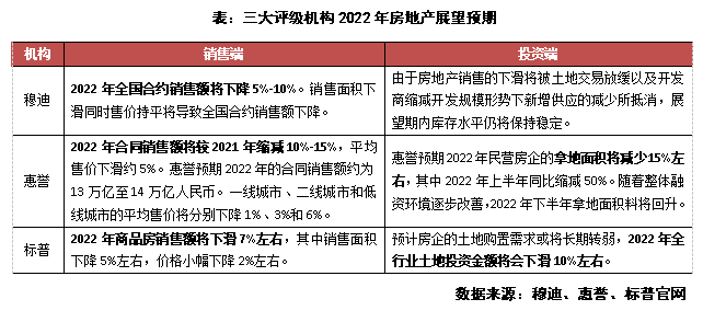 三大評級機(jī)構(gòu)對2022年行業(yè)展望較為悲觀,但整體行業(yè)危中有機(jī)。