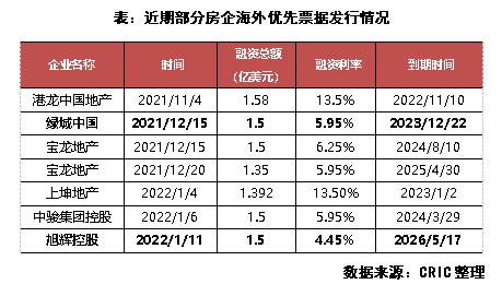 從近期房企發(fā)行海外優(yōu)先票據(jù)的情況來看,綠城、寶龍、中駿及旭輝等均有優(yōu)先票據(jù)的發(fā)行。其中旭輝控股于2022年1月11日增發(fā)的1.5億美元,不僅利率最低(僅4.45%)且到期時間較長(2026年到期)。在當(dāng)前環(huán)境下,房企若能贏得債權(quán)人信心,獲取利率更低、期限更長的融資機(jī)會,才有機(jī)會在逆勢中尋得良機(jī)。而那些出現(xiàn)流動性緊張的房企,則更容易出現(xiàn)信用質(zhì)量持續(xù)惡化的現(xiàn)象,從而在2022年中掉隊(duì)。