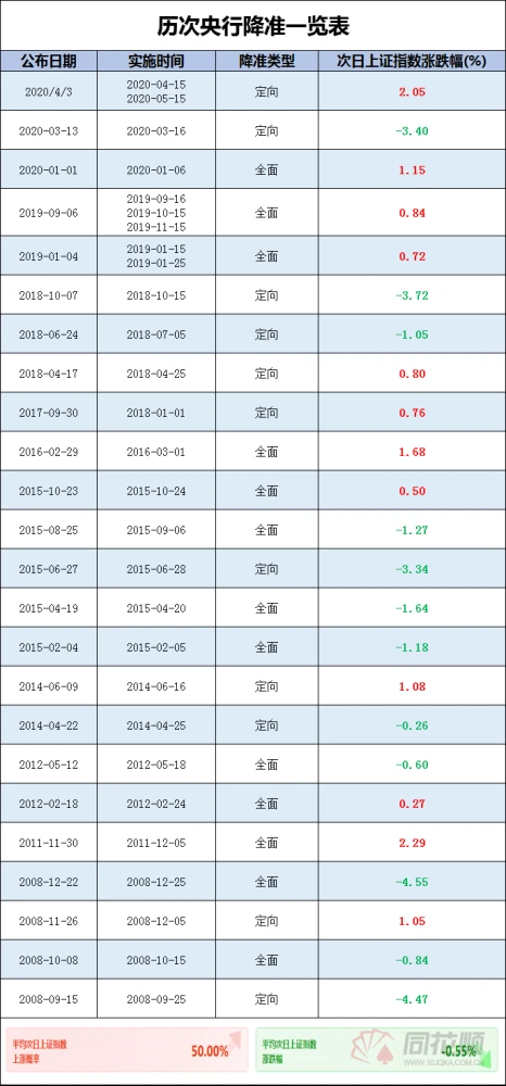 2,今年以來部分大宗商品價格持續上漲,在此背景下,上游對中下游企業利潤擠占明顯,中小微企業壓力較大,成本明顯上升,需要降低融資成本緩解壓力。3,聽機構的人說,觀察到疫情后,居民的預防性儲蓄偏高,消費持續不及預期,內需指標的恢復進程可能會因PPI上升而放慢步伐。國內經濟雖然穩了,但消費拉不起來,經濟基本面就強不起來。4,降準的另一頭是怕通脹,但這個問題目前來看還好。一方面國內通脹水平整體可控,也算是為降準打開空間;另一方面,大家也感覺到目前政策的重心是在經濟恢復、穩增長,優先級重要于防通脹。備注,通脹水平可控,可參考6月CPI與PPI,漲幅均回落了:其中CPI同比上漲1.1%,前值上漲1.3%,漲幅較上月回落0.2個百分點,為今年以來首次回落;PPI同比上漲8.8%,前值上漲9%,漲幅回落0.2個百分點。5,M2與社融基本上已回歸至2019年的常態水平,實體經濟依然感覺流動性不足,需要政策層面給予呵護。6,再有就是從銀行層面看,通過釋放銀行被凍結的準備金,也相當于降低了銀行們的資金成本,在配合存款報價機制改革的同時,能推動銀行們以更低的資金支持中小微企業。我們小老百姓關心得最多的,無非樓市、股市、債市。再者“愉見財經”是寫銀行的公眾號,那也看看對銀行業而言是否利好(這或也關于銀行股走勢,是吧?)對樓市,“愉見財經”覺得與其盯著市場資金面,不如直接看信貸政策,來得更單刀直入。那么遺憾的是,盡管資金面上頭有好消息,但信貸政策沒有啊。準備金率一低,是可以釋放出資金,但我不認為最懂政治的銀行們敢把這錢搞到房地產類貸款里,“兩道紅線”還是矗在那里巋然不動的好伐。不信你們看,很多地區的二手房還是停貸中啊。再者,就是上頭希望的是銀行們對實體經濟、小微企業那么持續保持低貸款成本,降的是那頭。房地產類貸款,包括按揭在內,大概率不會有啥明顯受惠,上頭對樓市的高壓口徑可是一點沒有放松的。所以我的感覺是,對樓市而言,降個準,不算什么大利好。對股市,是有提振信心作用的,至少大家不會擔心貨幣政策收緊了,但究竟有作用多大,其實有限,肯定不如對債市那么立竿見影。畢竟只是個降準而不是降息,更多影響的是銀行體系內價格調整的問題。我每次降準后寫稿,都要擼一遍歷次降準后第一個交易日我大A是漲是跌,你們看完下表就會了然,其實漲跌概率對半。所以真心難預測啊,我個人也不認為A股的震蕩期就此結束。