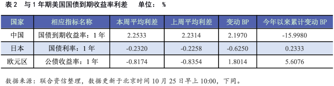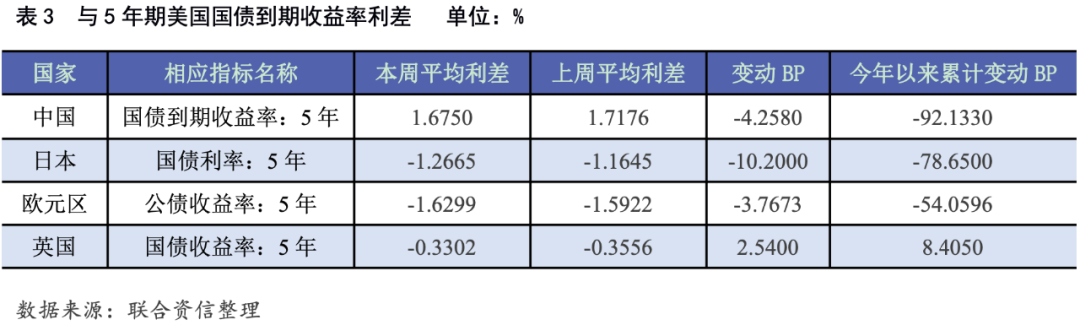 各期美債收益率全面上漲,各主要經(jīng)濟體國債與美債收益率利差走勢不一