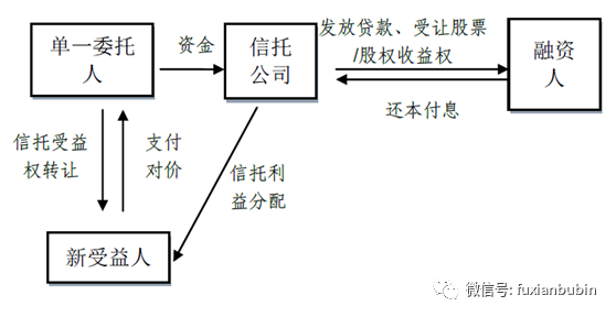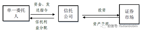 1.單一資金信托是信托公司接受單個委托人委托,依據(jù)委托人確定的管理方式單獨管理和運用的貨幣資金的信托。該類業(yè)務具體模式列示如下: