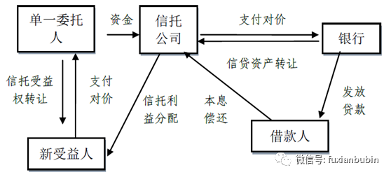1.4單一資金受讓信貸資產(chǎn)類業(yè)務,其業(yè)務流程圖如下: