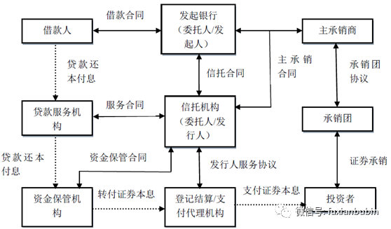 信貸資產(chǎn)證券化業(yè)務,是指銀行作為委托人和發(fā)起人,將信貸資產(chǎn)委托給信托公司,由信托公司作為受托人和發(fā)行人,以信托受益權為基礎在銀行間市場發(fā)行信貸資產(chǎn)支持證券。