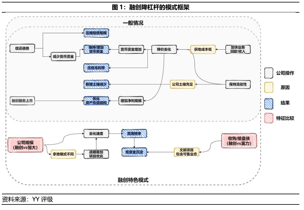 然而,面對如融創這般大型紅檔房企得以快速降杠桿,或得以借鏡其經驗,自“獲地成本與售價空間”、“存貨周轉率”、“銷售額/有息負債”和“公司多元化勾地項目的變現性”等層面推演其他主體的去杠桿空間與能力。