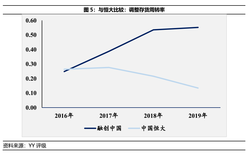 雖均為依賴大量非標舉債拿地的大型房企,融創與恒大最大的差異體現于周轉率的高低,兩間主體從而有了截然不同的結果。雖然礙于兩間上市主體提供的土地儲備信息較少,難以借由大盤多期分開的節點測算兩者運營策略的差異化分析,但從財務報表得出的周轉率高低仍見高下。