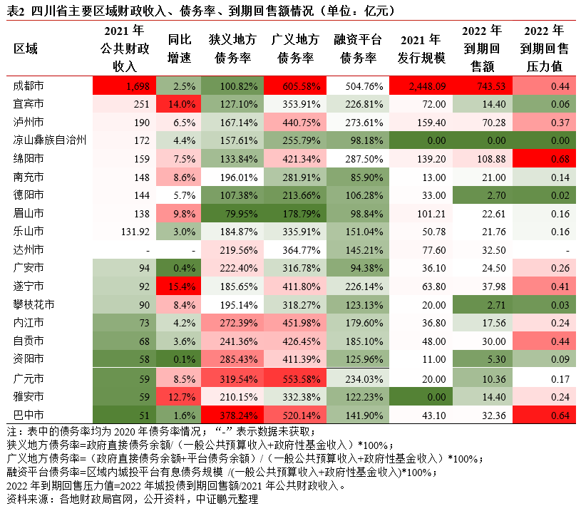 原標題: 2022年四川省城投債到期回售壓力研究