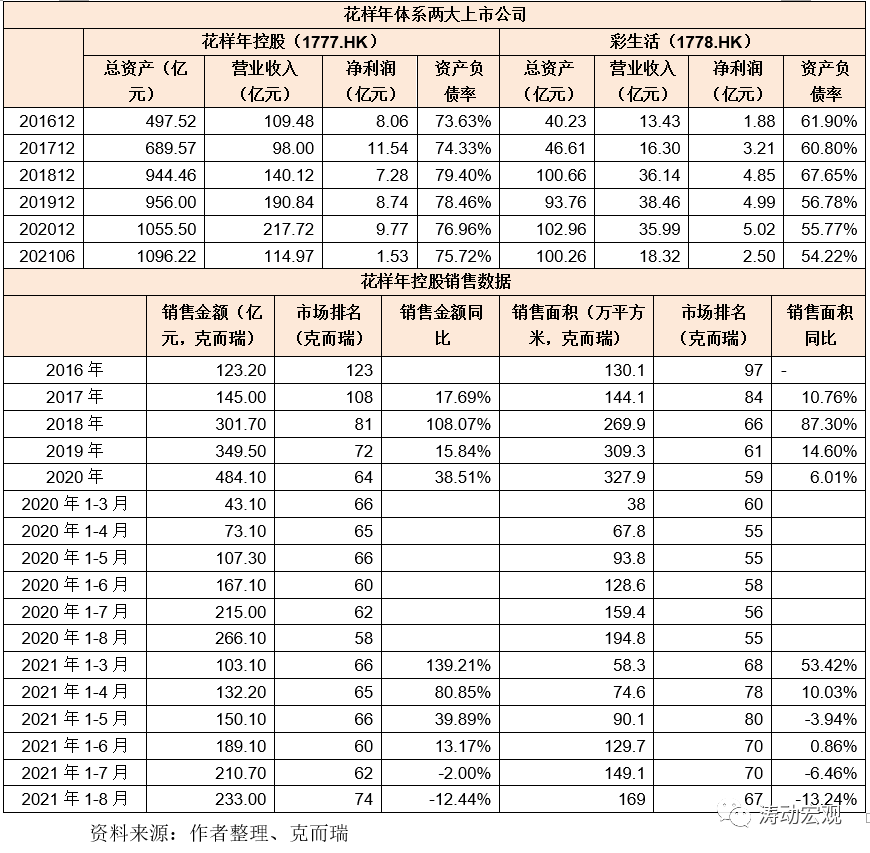 截至今年上半年,花樣年體系的兩大上市公司(即花樣年控股和彩生活)的總資產(chǎn)分別為1096.22億元和100.26億元,分別實現(xiàn)營收114.97億元和18.32億元(同比分別增長22.99%和1.14%)、凈利潤分別為1.53億元和2.50億元(同比分別增長58.73%和5.80%)。從規(guī)模上看,花樣年并不突出,在百強地產(chǎn)企業(yè)中排名大約在50名以外。