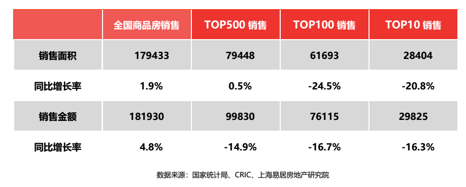 具體到頭部房企,萬科、碧桂園、融創(chuàng)、新城、新城等銷售規(guī)模均同比下跌,TOP10房企全年銷售額同比下降了16.3%。